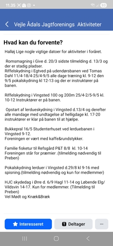 Foreningen arrangerer både flugtskydning og riffelskydning på faste tidspunkter gennem året.